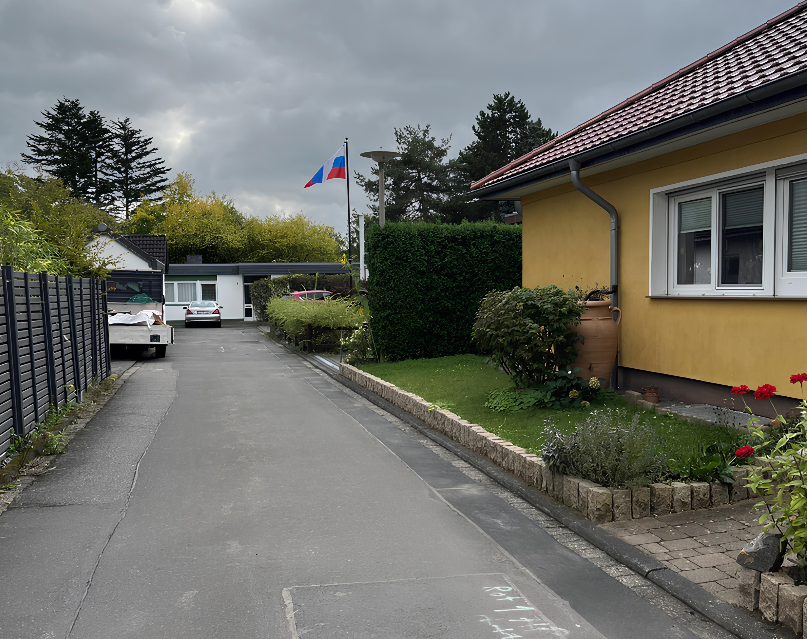 В маленьком посёлке Breite Heide ( Rheinbreitbach) на Западе Германии, где живёт всего несколько сотен человек, над ухоженным домом развивается триколор российской федерации.