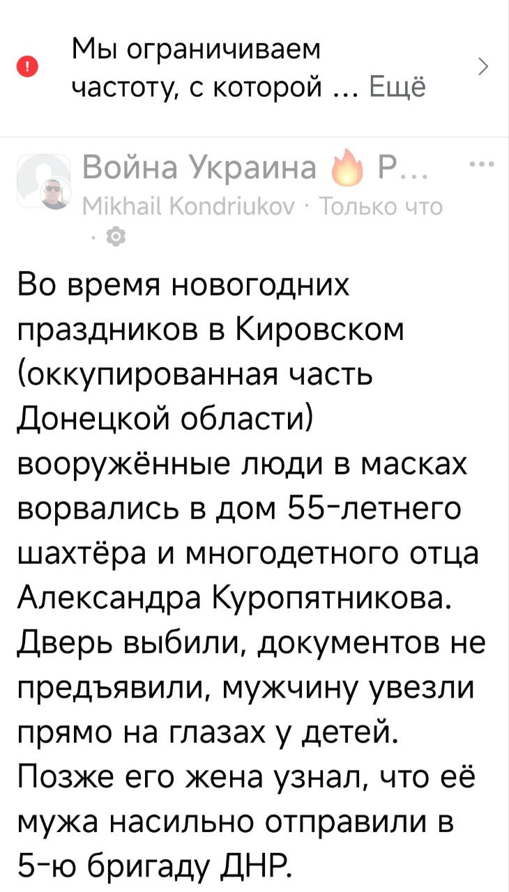 Facebook продолжает блокировать публикации, рассказывающие о произволе и беспределе путинской власти и его оккупационной армии в Украине. Мы сообщество журналистов и никогда не нарушаем правила платформы и законодательство о СМИ, делаем наши посты корректно и распространяем достоверную информацию. Facebook ни разу не предъявил нам обоснованные доказательства каких-либо нарушений правил платформы. Facebook просто применяет цензуру и вводит драконовские репрессии в отношении аккаунтов журналистов за их антивоенную деятельность.